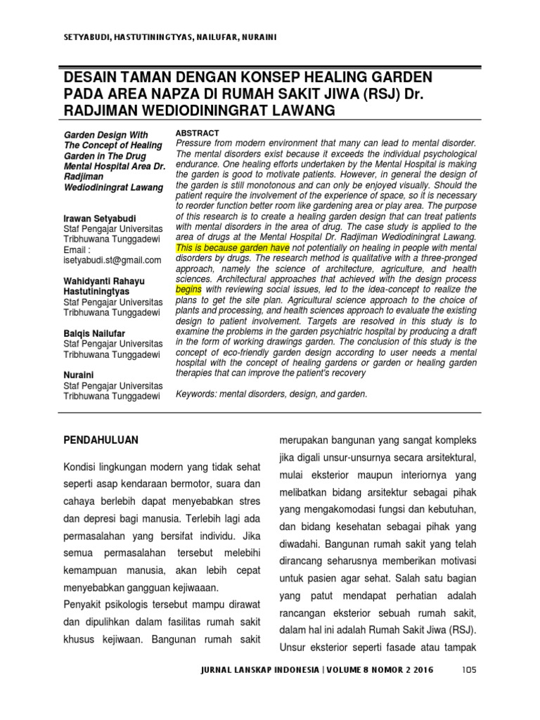 Desain Taman Dengan Konsep Healing Garden Pada Area Napza Di